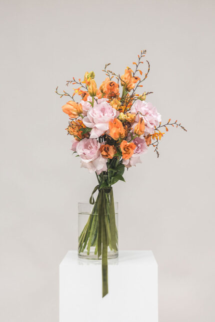 Foto zeigt beispielhaft die Größe, Farbkomposition und den Stil des Straußes – je nach saisonaler Verfügbarkeit und aktueller Blumenauswahl kann es jedoch zu liebevollen, ebenso stimmigen Abweichungen kommen.