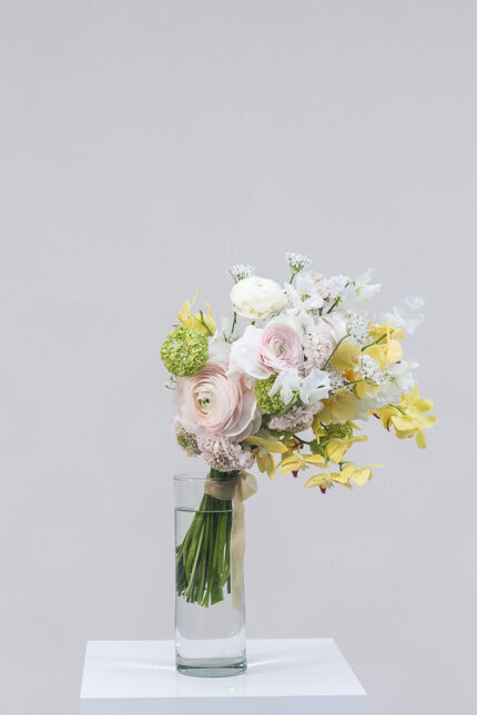 Ein harmonisches Bouquet in Rosa, Weiß und hellem Gelb – ruhig, edel und voller Leichtigkeit.